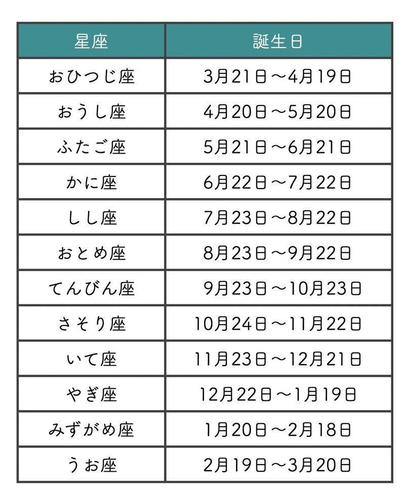 12星座早見表 星座と誕生日